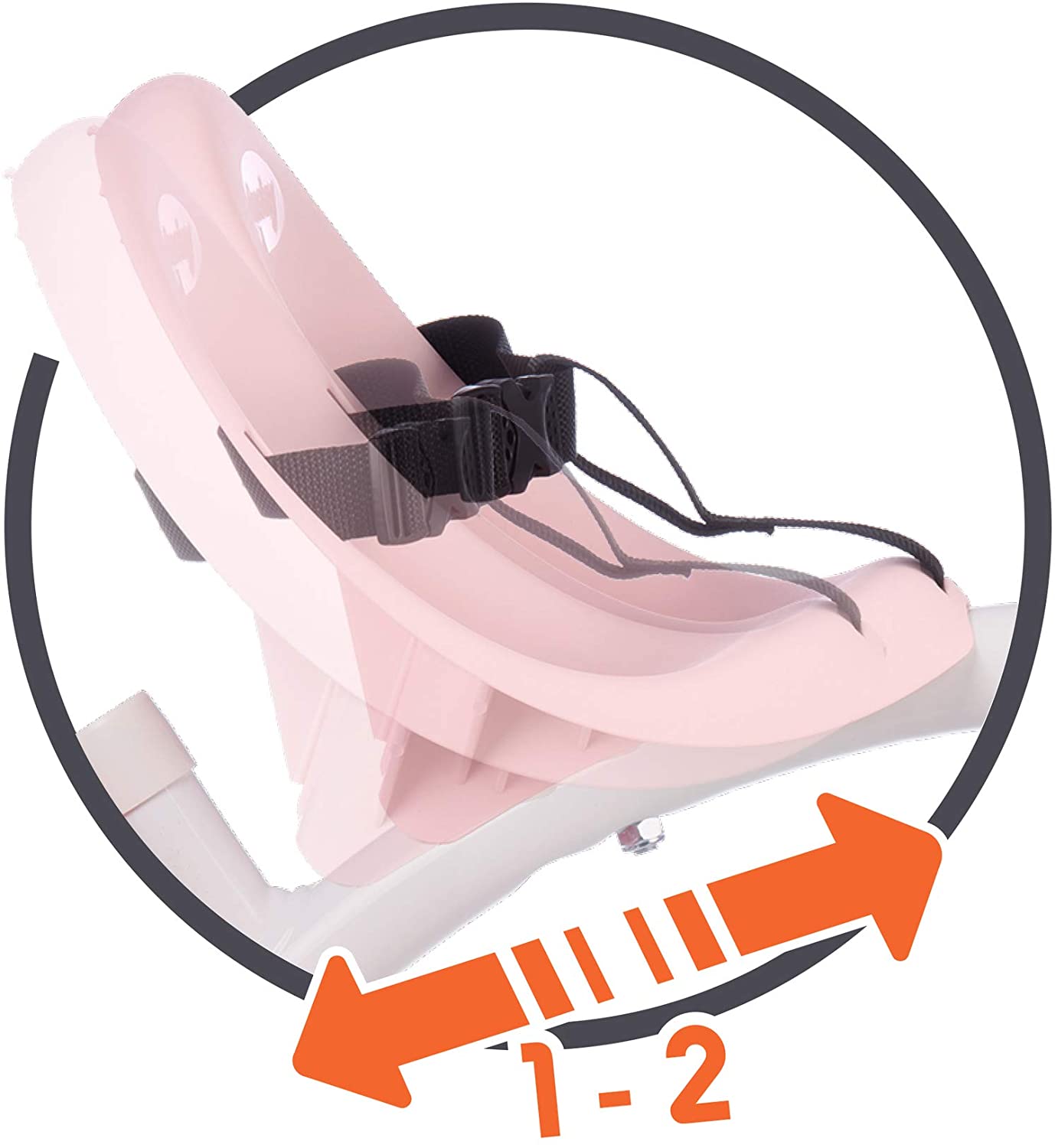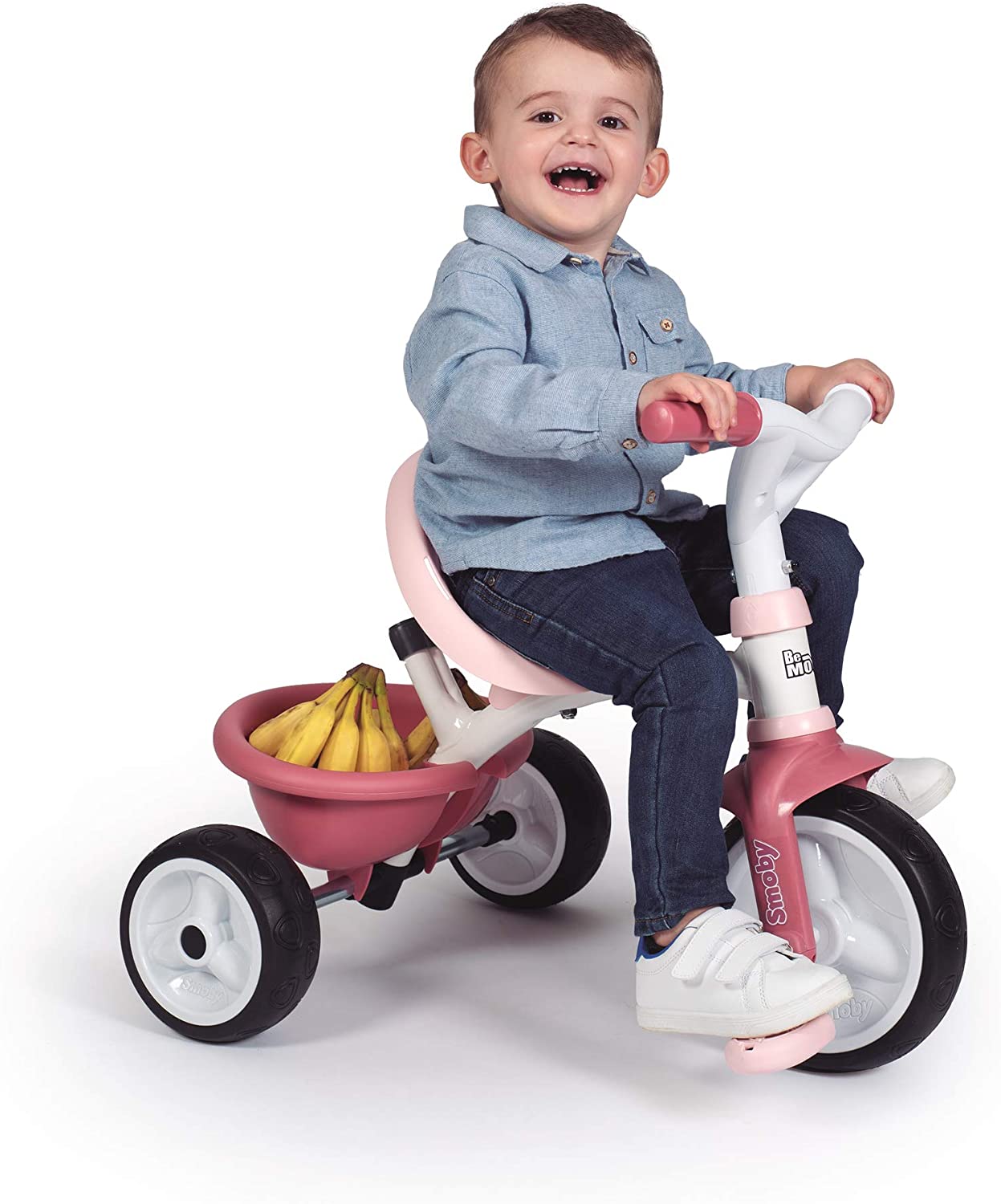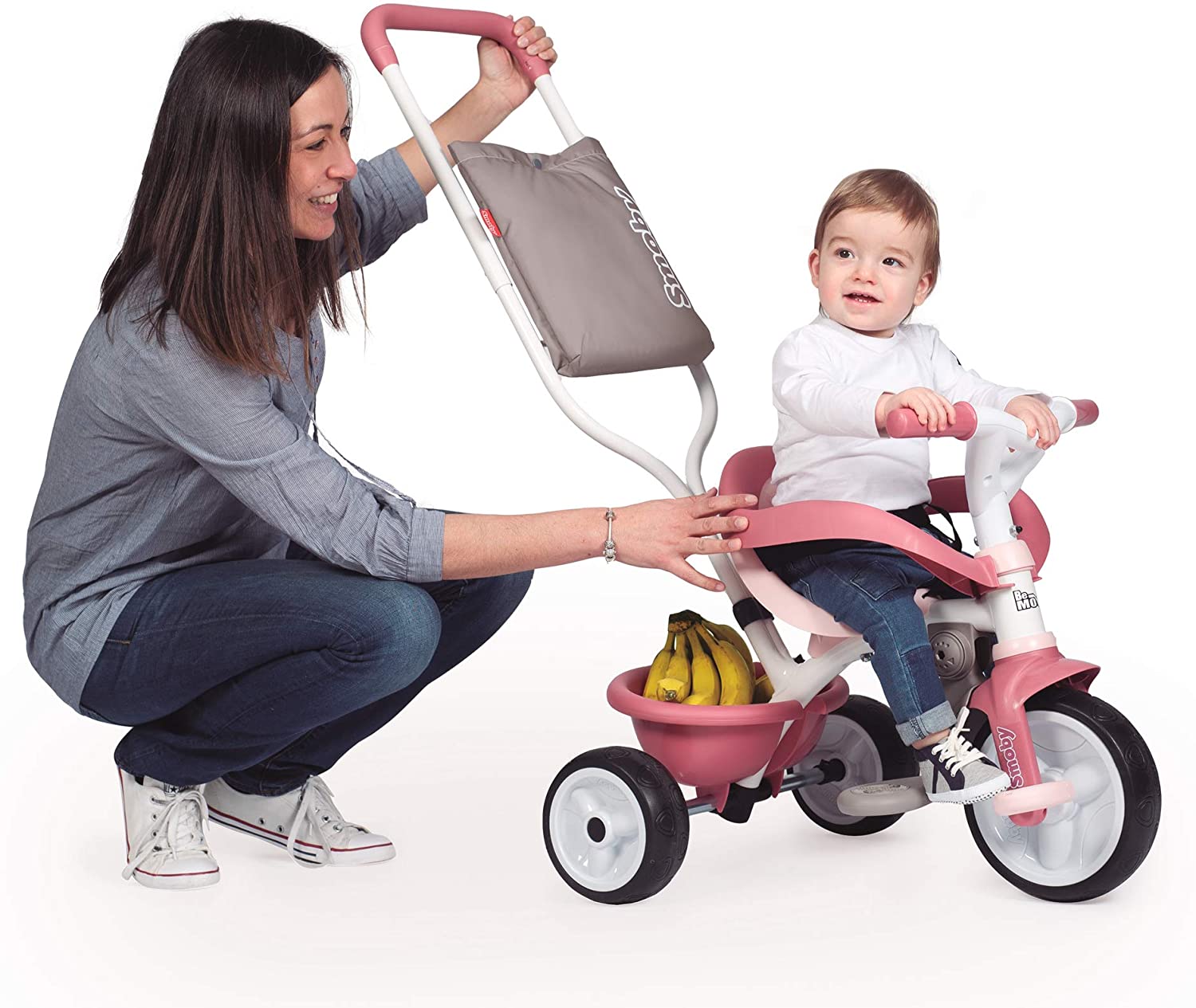 Ruedas silenciosas de goma eva. Triciclo de tubo de acero. Sillín regulable Bloqueo de dirección, cinturón de seguridad, barra parental regulable en altura, sistema de rueda libre. Incorpora una mochila y aro de seguridad Certificado de calidad GS. 3 años de garantía. Fabricado en España Dimensiones: 68 x 52x 101cm