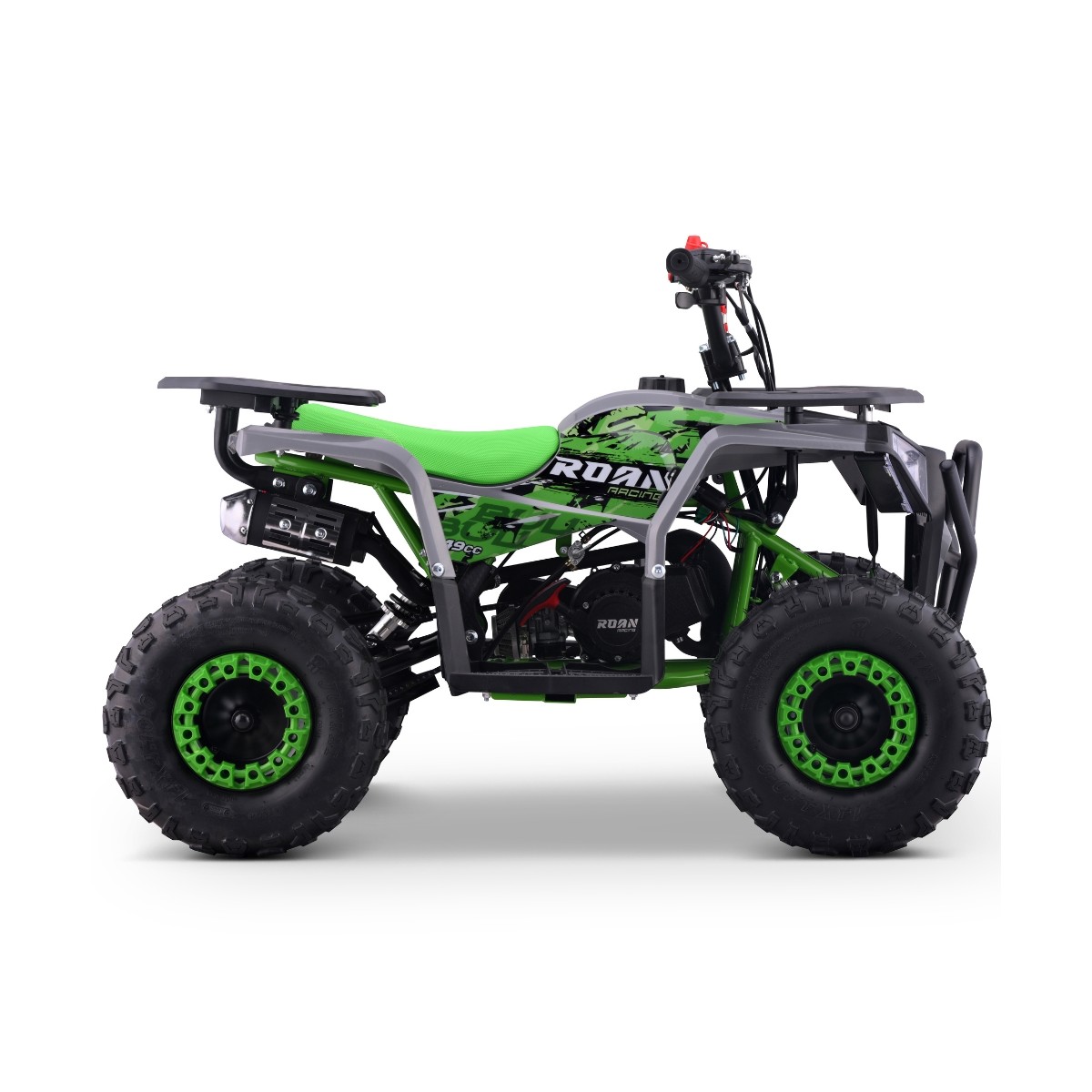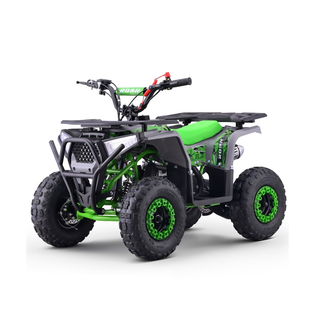 El corazón del mini quad Roan Bull 49cc es su motor monocilíndrico de 2 tiempos, que entrega una potencia máxima de 4.5 CV. Esta potencia es más que suficiente para ofrecer a los pequeños una experiencia emocionante y dinámica. El motor de 49cc es fácil de manejar y no requiere grandes conocimientos técnicos, lo que lo hace ideal.