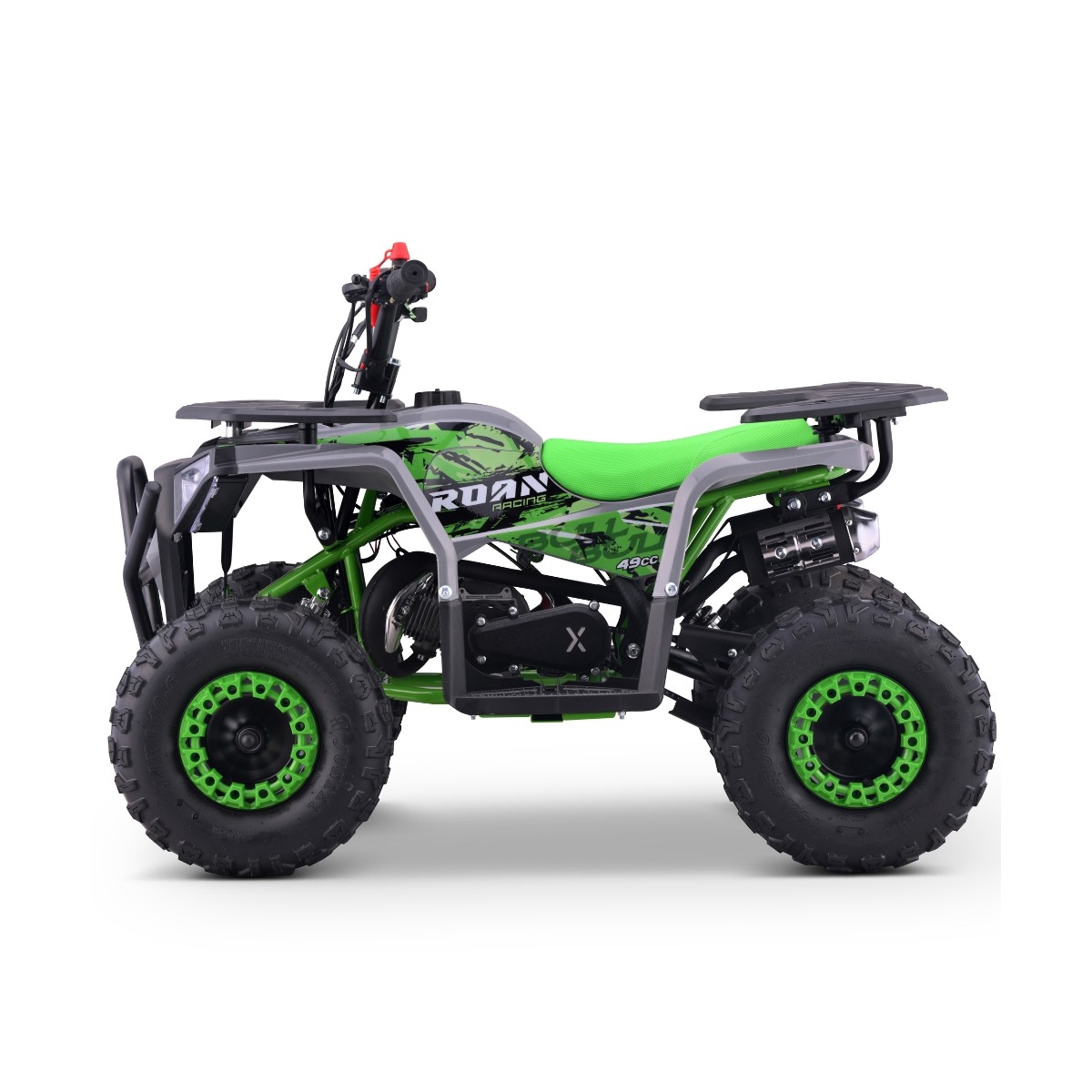 El mini quad Roan Bull 49cc es la gran novedad que ha llegado para revolucionar las aventuras de los pequeños pilotos en casa. Este quad de gasolina, diseñado especialmente para los niños, ofrece una experiencia emocionante, segura y llena de diversión. Equipado con un motor potente de 49cc 2 tiempos, frenos de disco, y llantas de 6 pulgadas. Es el vehículo perfecto para que los más jóvenes se diviertan y pasen grandes momentos. Con una altura ideal del suelo al asiento de 50 cm, el mini quad es cómodo, manejable y proporciona la seguridad que los padres buscan. Mientras que su diseño robusto y características innovadoras garantizan la mejor experiencia de conducción.