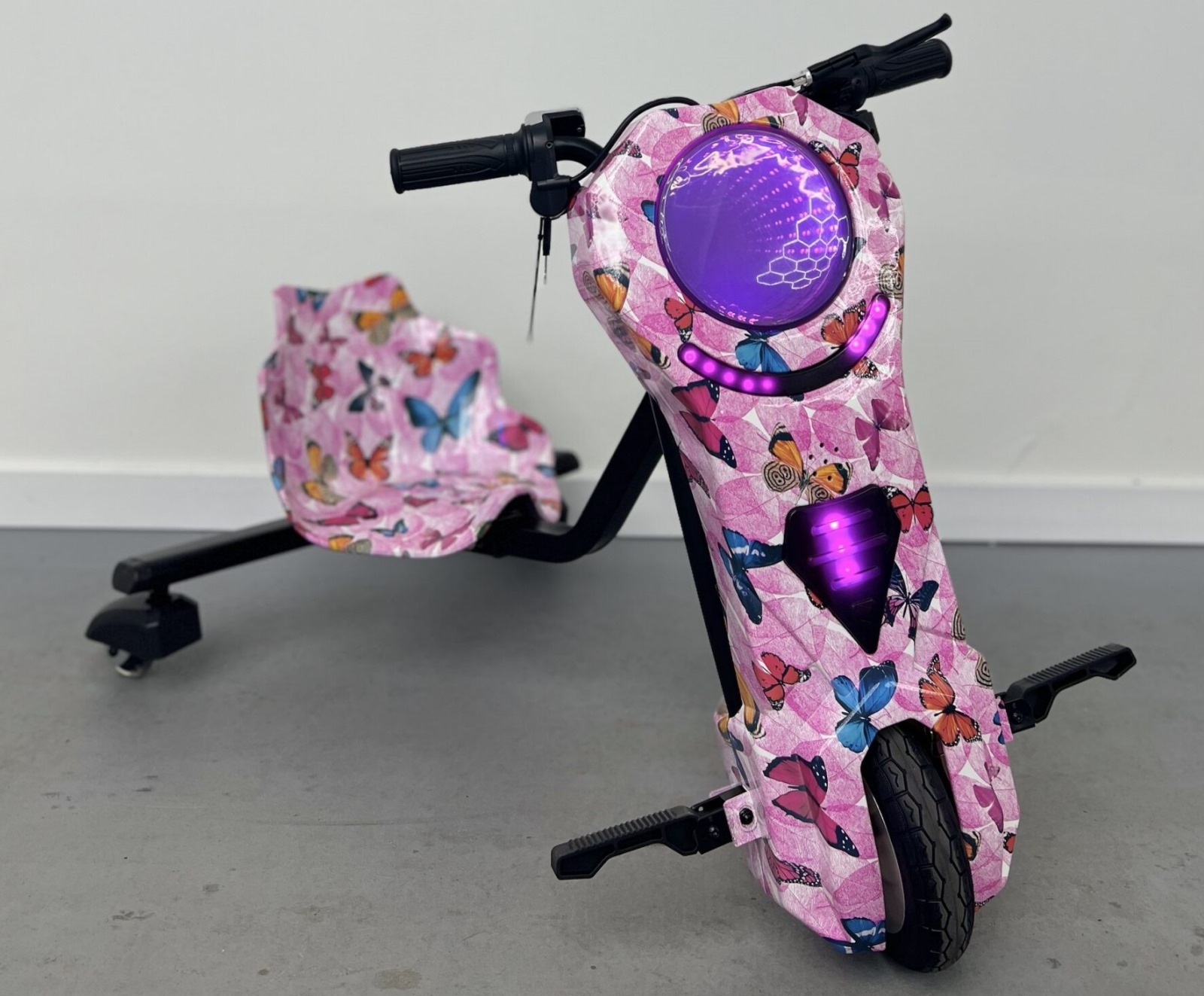 - Luces LED multicolor delanteras y en las ruedas.