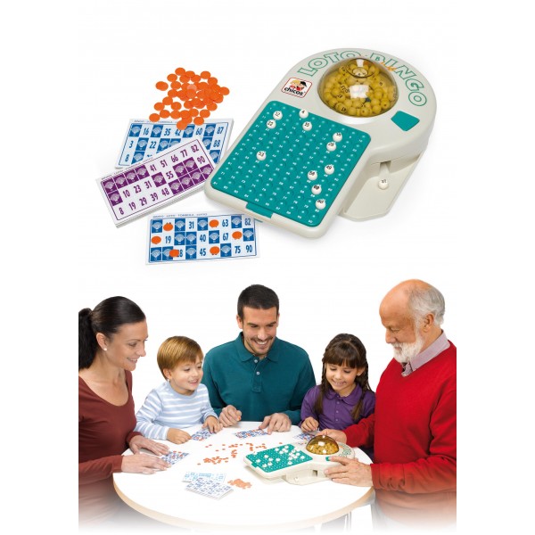Loteria de 24 cartones eléctrico a pilas con 90 números y fichas de juego para toda la familia.